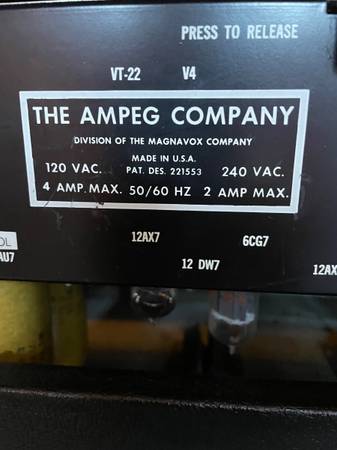 NOTE: This is the V-4 guitar amp, not to be confused with the Ampeg V-4B bass amp.