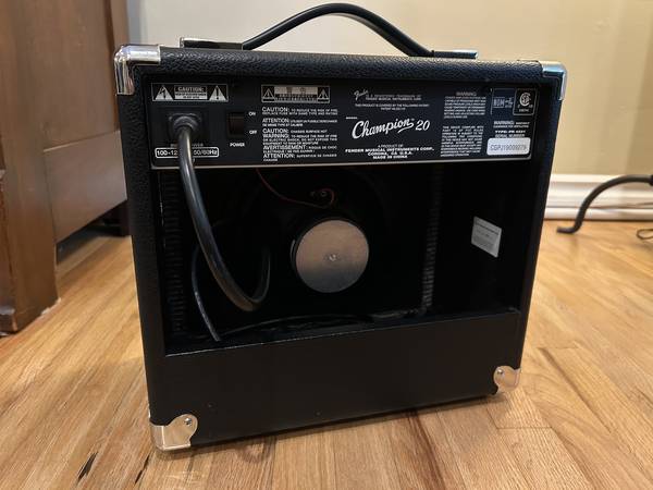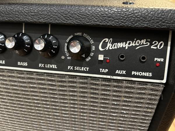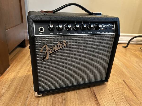 Excellent condition Fender Champion 20 Combo Amp with 20 watts power, and a truckload of tones and effects. 4 variable amp voicings include: Blackface, British, Tweed and Metal Effects include:...