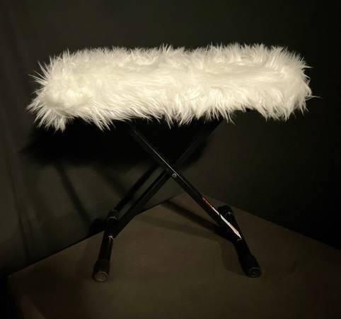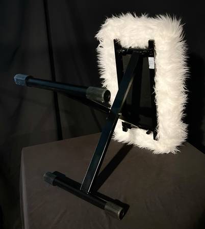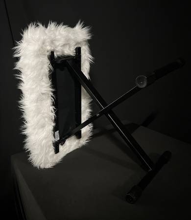 Here's something you do not find for sale everyday. Up for grabs here is a Pro Line PL1250 Heavy Duty Piano/Keyboard stool, customized with white fur material that was used by none other than Elton John himself for a film shoot. This chair's memory foam and fluffy custom reupholstery makes for a very comfortable and breathable chair. The customization is top notch. And the style can't be beat!