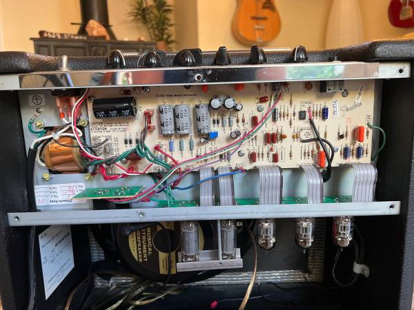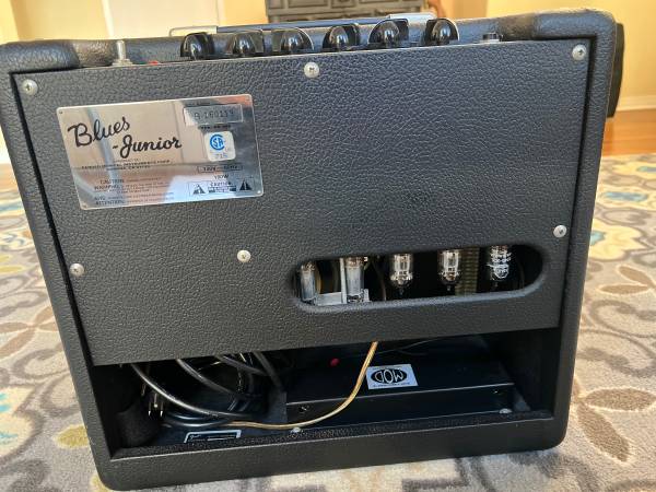 Mid 2000’s Fender Blues Junior cream board. I did a bunch of the Billm mods that were designed to get rid of the boxiness that the stock amp has. It has Twin tone stack mod, upgraded tone caps, stiffened power supply caps, upgraded output transformer, adjustable bias, MOD reverb tank, probably a couple more I dont remember right now. Original output transformer and reverb tank will be included and both work fine.