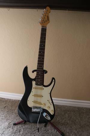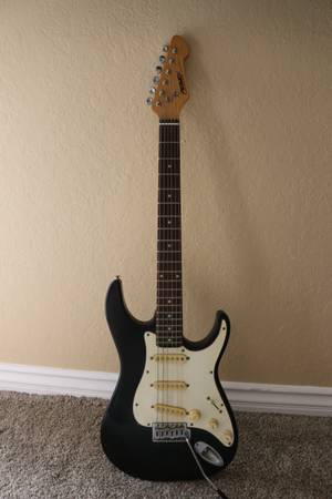 Peavey RAPTOR Black Solid Body Electric Guitar offers classic style and versatile tone. Featuring a sleek double-cutaway body, three single-coil pickups, a 5-way selector switch, and a maple neck with a rosewood fretboard, it's perfect for players of all levels. Its lightweight design and smooth playability make it a great option for practice or performance. This guitar delivers reliable Peavey quality and performance at a budget-friendly price
