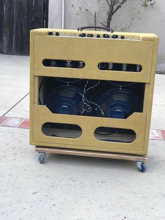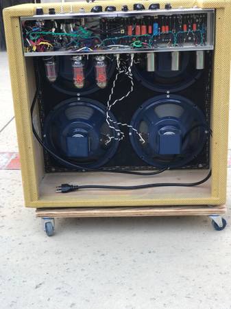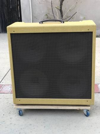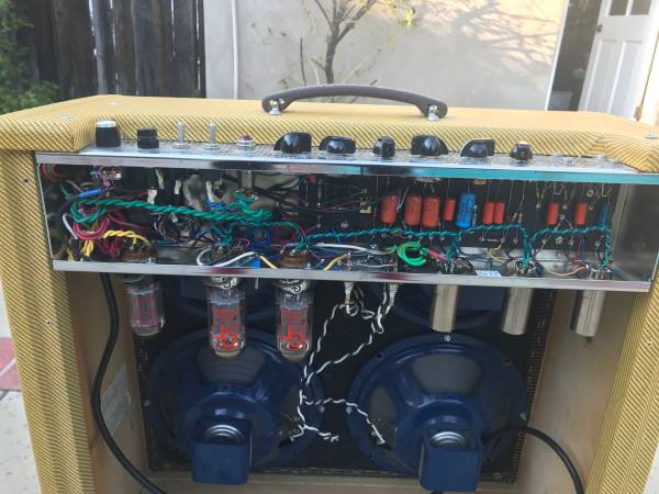 Handwired 5F6A Bassman 4 Fender alnico speakers . Has a Lar-Mar master volume . You can find the sweet spot at a lower volume , Much better than a Fender circuit board reissue and doesn't cost $3700 to $6400 vintage amp full of very old parts. you can buy a top quality clone for the cost if a " reissue" printed circuit board Fender amp
