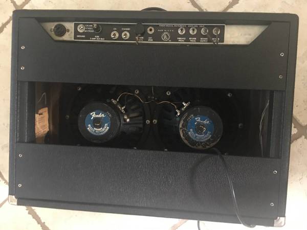1967 Vibrolux Reverb for sale, all original iron, grill and tolex, Original speakers... Serviced and 3 prong AC cable, original reverb pan. 1968 Silverface Drip edge Vibrolux Reverbs are getting $3850 that are real clean and 66 Deluxe Reverbs are even more... No rev/trem pedal. These are the perfect smallest 2 x 10 6L6 amp. Great for recording and small to medium rooms. Upgrade the speakers to JBL or Altec, and the girls and their even hotter moms will be throwing themselves at you!!!