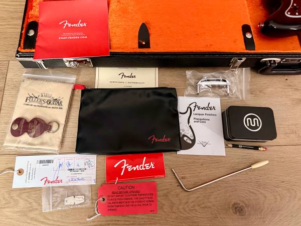 In mint condition, still has plastic on pickguard. Upgraded with Mastery bridge. Comes with the original bridge, case candy and OHSC. You can smell a brand new guitar when you open the case.