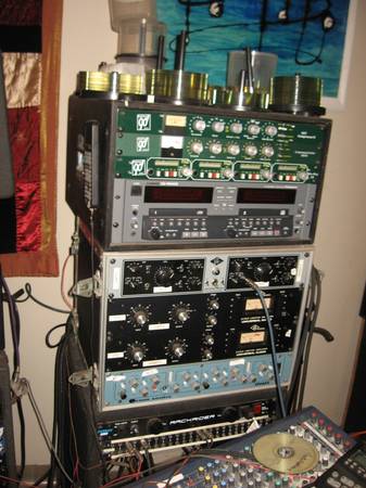 MCI Jh-16 24 track tape machine w/ remote, 16 track headstacks. Universal Audio 2-610, 2-1176'2, NEVE 1073, DAKING MIC PRE 4,LEXICON EFFECTS, TASCAM CD BURNERS, GUITARS, BASSES, KEYS, TONS OF GEAR, ALL FOR 35K. The Tape machine belonged to Ray Charles. I have a letter of authenticity signed and notorized.