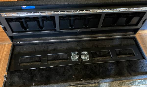 GSX-8 Holds 8 guitars Height (open) 25-1/2" Width (open) 52- 1/4" Depth (open) 20" Height (closed) 4-3/4" Width (closed) 52-1/4" Depth (closed) 18" 42lbs