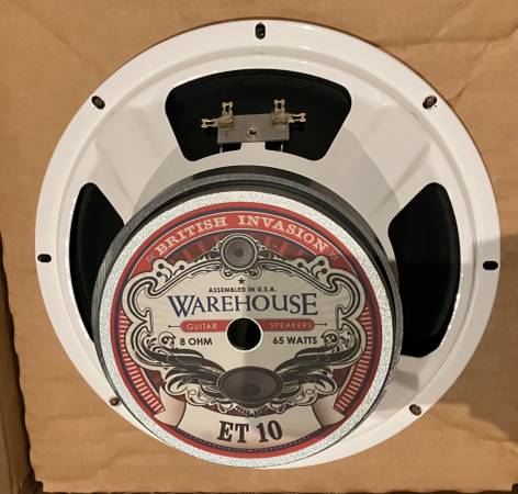 The WGS ET10: the 10" version of the ET65. 65 watts, 8 ohms. Very efficient, 100.17 db SPL. tested but not used, no solder on speaker terminals...