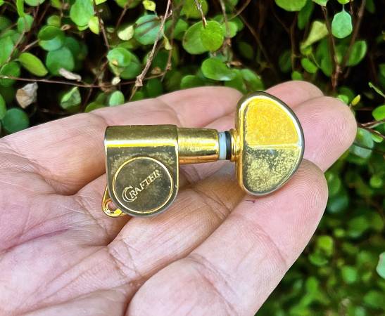 SINGLE (1) Gold CRAFTER Tuner for E A D Strings includes bushing and a washer Offered in very excellent vintage condition. Works A+