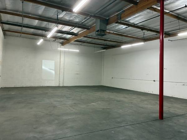 Clean warhouse space with two offices and private bathroom. Two loading doors, 3 phase power, and gated parking.