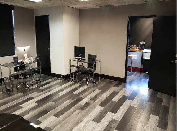 Six private offices plus a 18 foot high open space area that allows for both private work spaces and communal areas. The private offices provide a quiet and separate space for focused work, while the open space allows for collaboration and communication among team members. The 18 foot high ceilings in the open space area can also create a sense of spaciousness compare to standard 8 foot ceiling offices on the market