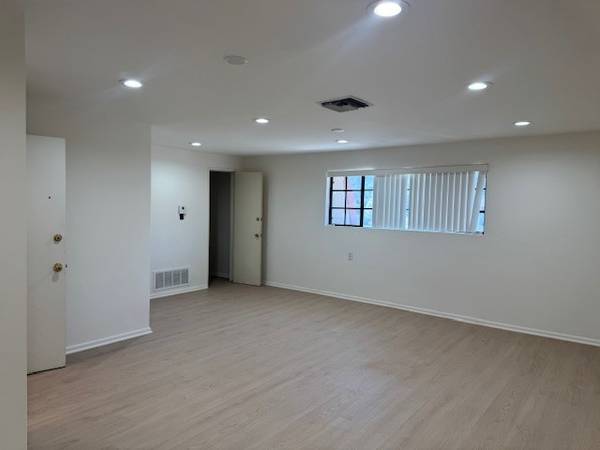 Office space available approx 600 sq ft of ground level space. The office has a reception section. Shared/common restrooms maintained by building management and Central heating and air conditioning. Bright, natural light with large windows. Brand n ew flooring and recess lighting. All utilities included including common area cleaning service.