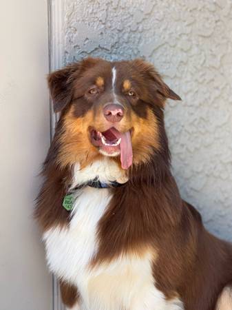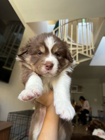 I’m posting my 8 week old red tri Australian Shepherd puppy who will be ready for his new home at the beginning of this week. He will come fully vaccinated, healthy, and well cared for.