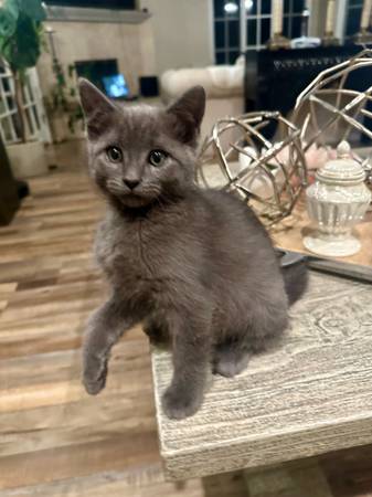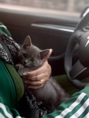Russian blue kitten 8 weeks old playful eating solids and litter trained Rehoming 732-983-811seven