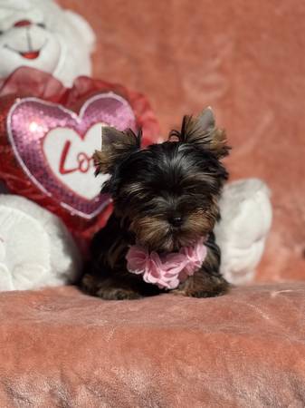 Purebred Yorkshire terrier , champion line, full registration , titled parents. Mini size, short baby face, vaccinate . Hypoallergenic breed