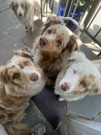 I have two Australian shepherd pups that I can't keep as I'm moving into an apartment that doesn't allow dogs. They're about 1 year and 10 months old, trained at petco so they can do basic commands like: sit, stay, leave it, lay, come, heel.
