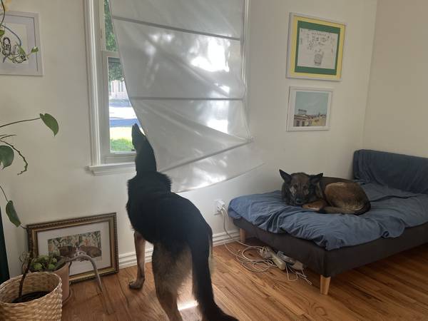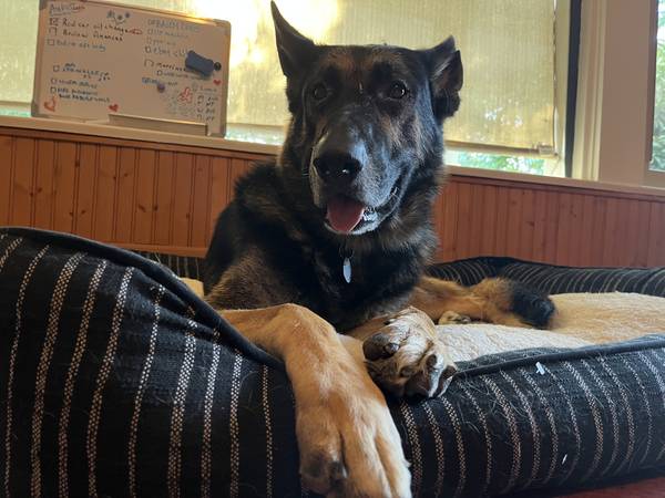 Max is about 80 lbs and ~7 years old. Neutered and vaccinated.