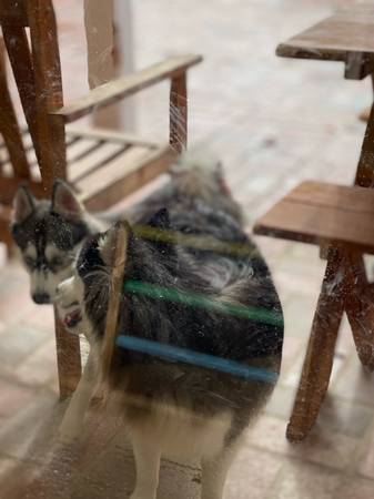 I am looking to rehome my two Pomskies, Dixie and Corbin, and would prefer to place them together if possible. They are extremely bonded, loving, and great with kids.