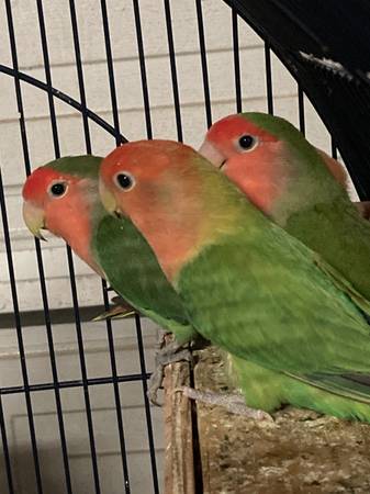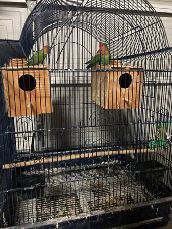 4 Peachfaced Lovebirds with Cage & Nest Boxes (Winnetka)