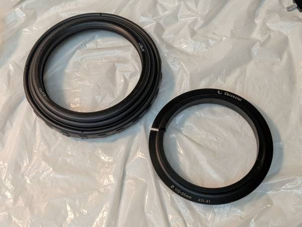411-41 Adapter ring (retaining ring - sits inside 110mm rear of part 410-11) from 110mm to 95mm lens interface.