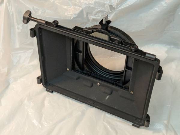 Professional Chrosziel matte box and lots of accessories. When new, the cost of this equipment was thousands of dollars. This was acquired for use with Arriflex Super 16 film cameras and professional Sony 16:9 video cameras, but it's widely used with virtually any professional film or video cameras.