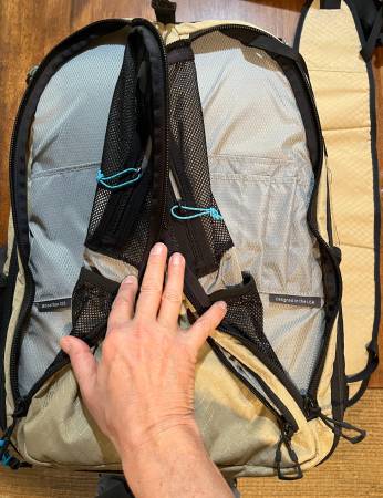 The tan Bataflae 26L Backpack from Gura Gear is a large pack for carrying a studio load of photo gear. It can accommodate your pro DSLR with or without grip, a 400mm f/2.8 attached and a 500mm f/4 with hood reversed as well as many other lenses in its fully adjustable interior using the touch fastened dividers. The unique facet of this pack is Gura's butterfly access system. These flaps come in handy when you don't want or can't open the entire bag. They fold open in the middle exposing the interior without opening the entire bag. If you prefer to open the pack completely, for a traditional opening.