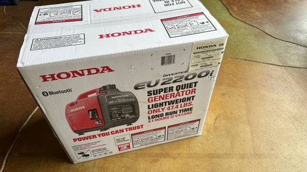 Brand new Honda EU2200i, Super quiet. Started it once to test. In the box. If ad in up it is available. I will throw a gas container for free