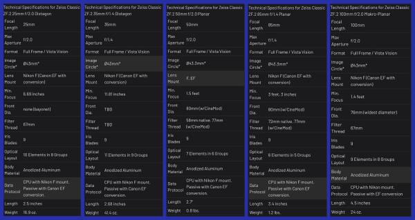 Rare and amazing set of five Zeiss Custom Planar + Distagon + Makro-Planar Duclos Modified ZF.2 Cinema Prime Lenses in PRISTINE and NEW CONDITION. All glass is perfect. You will never find a set exactly like this for sale again—and these are far from the stock lenses typically available from this line. All lenses are f/2 or f/1.4. We just learned that these were also color-matched—more of a thing back in the golden age of cinema, but only mentioned to reinforce the fact that these lenses are the absolute best.