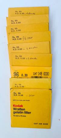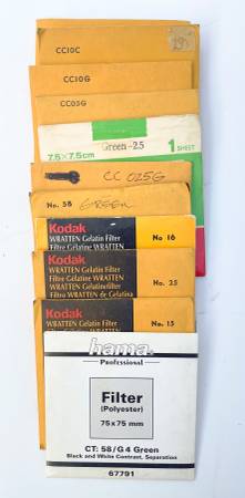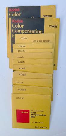 80 or so Kodak Wratten Filters, different sizes, some new, all in very good condition