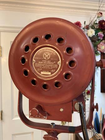 A piece of Hollywood! Authentic, working Mole Richardson #407 Baby Solar Spotlight w/ barn doors. We have 2 of these to sell - $200 ea. These spots are in very good condition, show some wear, but work well. They include 25' cable and thee barn doors. These will last many years to come! Enjoy!