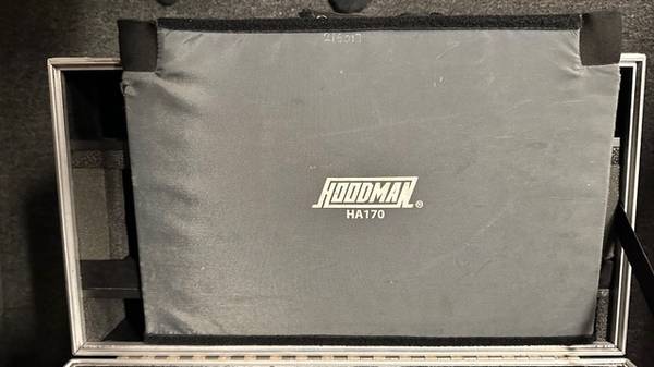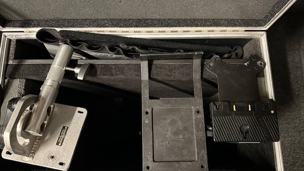 Has custom case, hoodman, two vesa production mounts and gold mount battery bracket.