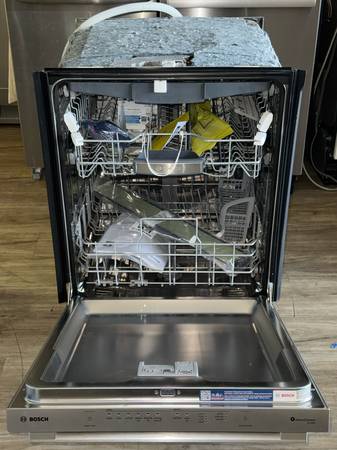 The Bosch SHX65CM5N 500 Series dishwasher delivers quiet, efficient, and powerful cleaning performance in a sleek stainless steel design. With a flexible third rack, adjustable tines, and RackMatic® system, this unit maximizes space to accommodate everything from small utensils to large pots and pans. PrecisionWash® sensors intelligently monitor and adjust the cycle for sparkling clean dishes, while InfoLight® projects a red light onto the floor so you know when the dishwasher is running. ENERGY STAR® certified and operating at just 44 dBA, it ensures whisper-quiet performance without sacrificing power.