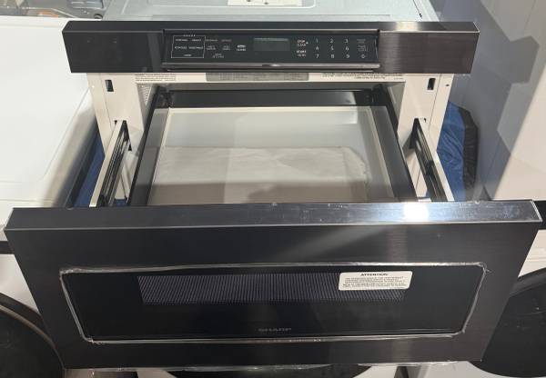 The Sharp SMD2470AH 24” Microwave Drawer offers a sleek, built-in design that frees up counter space while adding convenience to your kitchen. With its easy touch automatic drawer system, this unit opens and closes smoothly at the touch of a button. The spacious 1.2 cu. ft. interior accommodates a variety of dishes, while the 1000-watt cooking power ensures quick, even heating. Featuring an easy-to-read control panel angled for visibility, this stainless steel microwave blends modern style with everyday functionality.