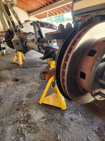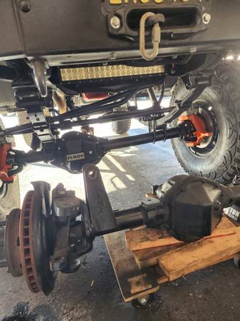 Fresh front GM dana 44 loaded and ready for use has new 456 gears detroit tru trac locker chrome Molly axle shafts greasable uni-joints Reid HD knuckles 8lug rotators cross over steering arms and mounts new brake calipers & pads warn hub locks and 3/8 steel difficult cover also have stock tie rod.
