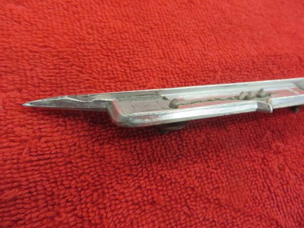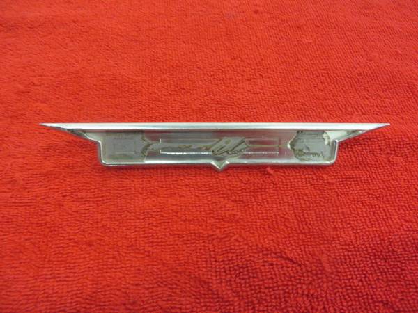 These crests attach to the sides of the front fenders of all 1959 Cadillac Series "62" models. These are originals, NOT reproductions. Two different versions were used in production: one using an anodized aluminum bezel; the other a chrome-plated brass bezel. I have both types. The plastic Cadillac crest insert was glued to the bezel. Prices range from about $50.00 for a bezel, to $135.00 for both a bezel and crest in good condition. Other 1959 and 1960 Cadillac parts available. show contact info