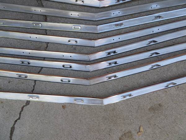 1959 Cadillac stainless steel deck lid moldings. I have both the standard styles for 62 and 63 Series cars, as well as Eldorado and Fleetwood styles, which have 8 holes to mount either an "Eldorado" or "Fleetwood" die-cast chrome bar.(I have the bars also). Prices on the stainless moldings range from about $100.00 to $800.00 each, depending on condition. Many other 1959-1960 Cadillac parts available. show contact info