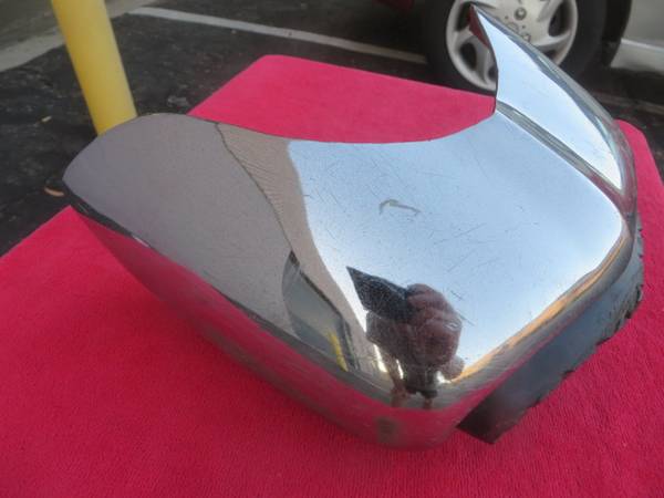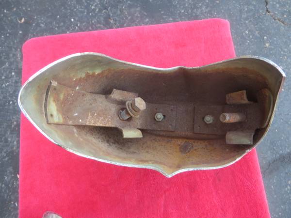 These rare accessory bumper guards mount on the very outer edges of the front bumper on full-size 1960 Fords. They're in fair condition, OK for driver, but would need to be re-plated for show. Price...