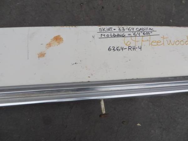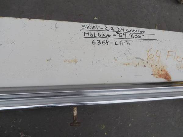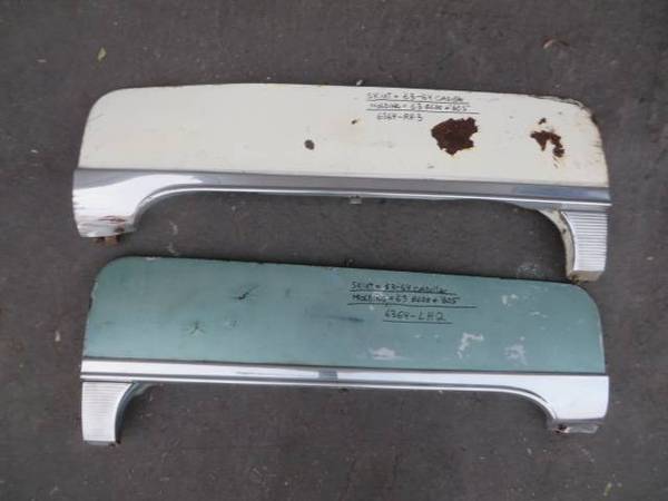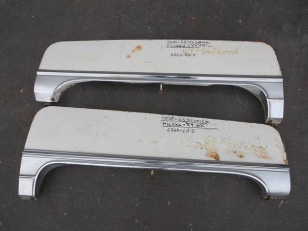 1964 Cadillac Fleetwood 60 Special fender skirts in good rust-free condition. The skirts are the same for all 1963 and 1964 Cadillac models, but the moldings are specific to the 60 Special this year. Price is $365.00 for the pair. I have more skirts for standard 1963 and 1964 models (without holes for the moldings), and for 1963 Eldorado and 60 Specials, as well as most 1948-197x Cadillacs. show contact info