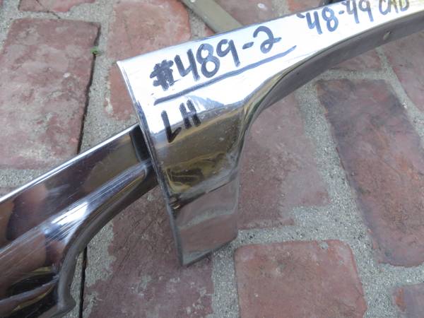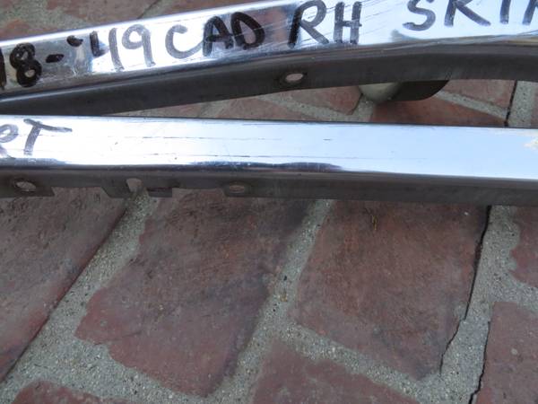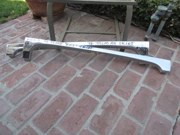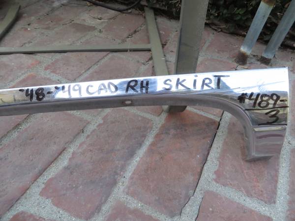 These moldings attach to the lower portion of the fender skirts for 1948 and 1949 Cadillac Fleetwood 60 Special models. Price $175.00 for the pair of moldings. I have only these moldings, no skirts....
