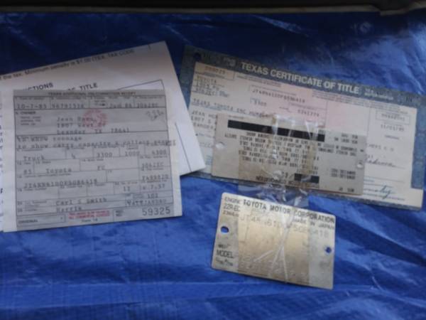 Comes as shown, Includes all the tags and paperwork, this is a one owner, original PS from 1985 Can be used to register and insure your tube buggy , rock crawler, off road vehicle ect.