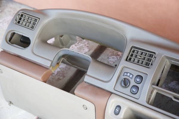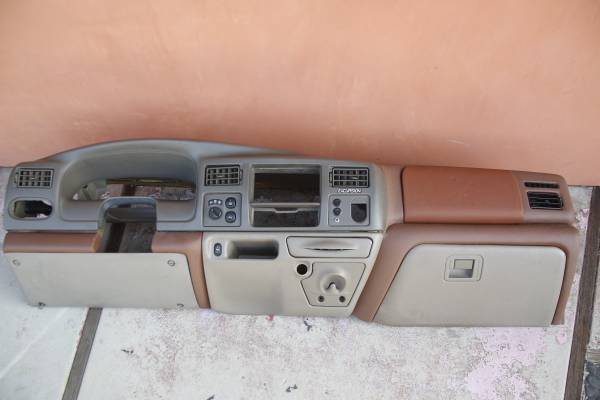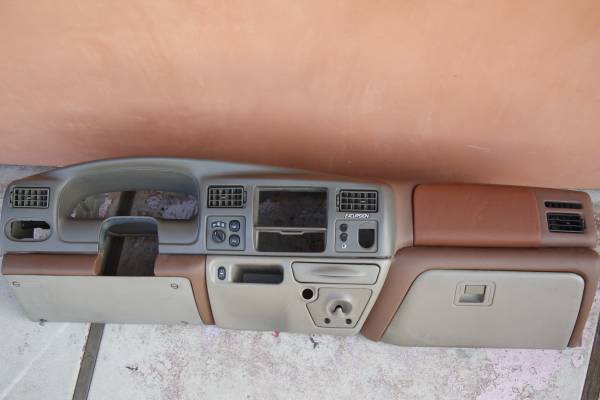 It is in very good condition, no cracks or damaged parts. The brown you see is a vinyl I had put on to match the new seats I got in my excursion. It can be removed and cleaned off if needed. The top trim piece alone is selling on eBay for over $300. I am asking that for the entire dash panel. Please feel free to call or text with questions show contact info