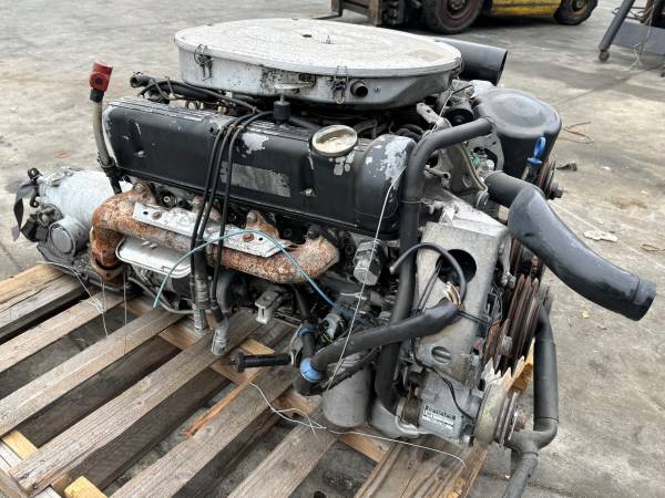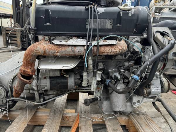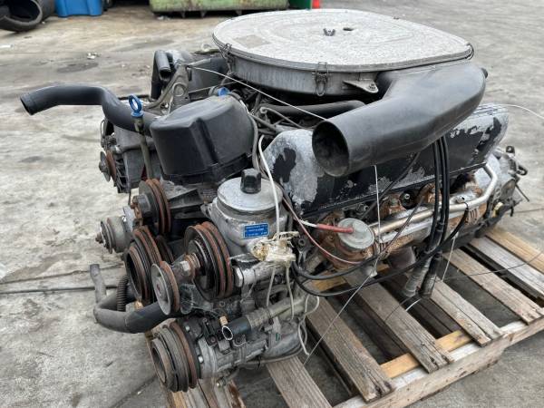 I am selling this *WORKING* - MERCEDES 107 CHASSIS COMPLETE ENGINE AND TRANSMISSION. This engine and transmission is complete, and was removed from a running and driving vehicle. I have strapped it down to prevent tipping over, and covered it to protect from the elements. Sound engine, sound transmission. Package deal, not really interested in parting it out. Please feel free to call or text with questions show contact info