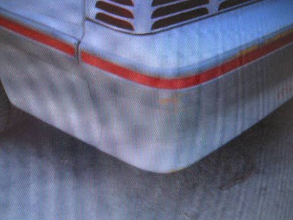 1988 Mustang GT rear bumper cover in white that has the common blemishes associated with a 28 year old auto part.
