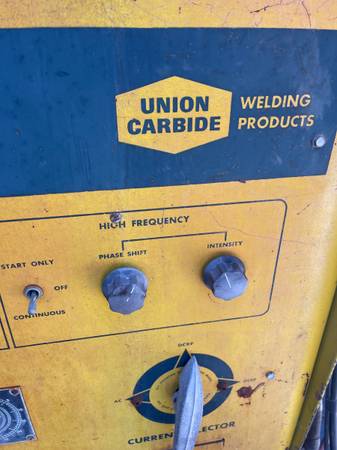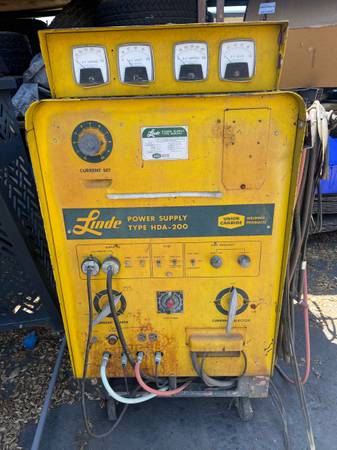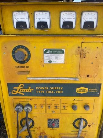 For sale is a Linde HDA-200 Power Supply Welder (TIG), manufactured by Union Carbide Welding Products. This is a heavy-duty industrial welding power source, capable of both AC/DC output. It was used in a professional setting but is being sold as-is and untested – I do not have the equipment to verify its functionality.