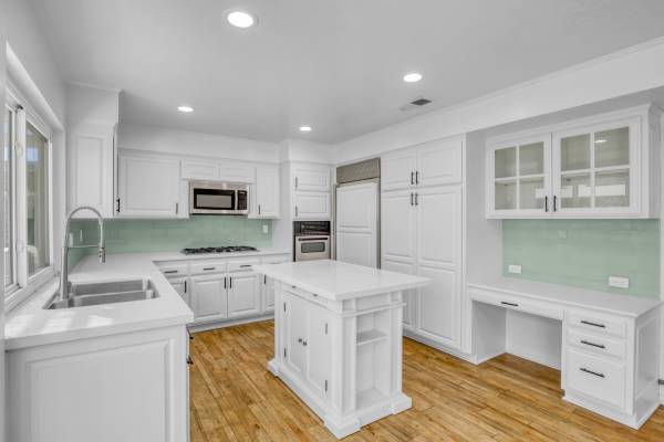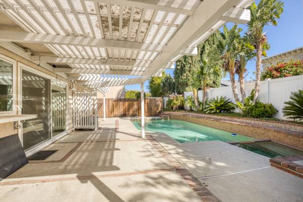 This Chatsworth two-story pool home at 10206 Nevada St is ready for new occupants. Located in a quiet neighborhood, this home features cathedral ceilings in the living room and a hidden bar area in the dining room. The updated kitchen includes a convenient center island and opens to the family room. The downstairs also includes a large primary bedroom with an en-suite bathroom that has a sliding door to the backyard. The remaining three bedrooms are generously sized and located upstairs, with a hallway bathroom serving them. The laundry area is conveniently located in the garage. Pool and gardening services included with monthly lease amount