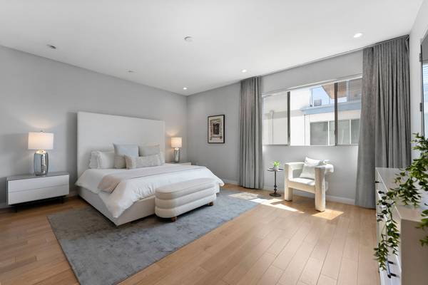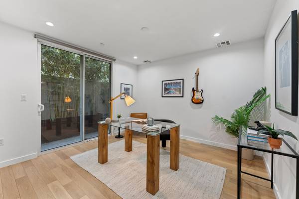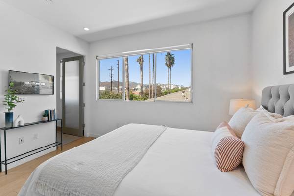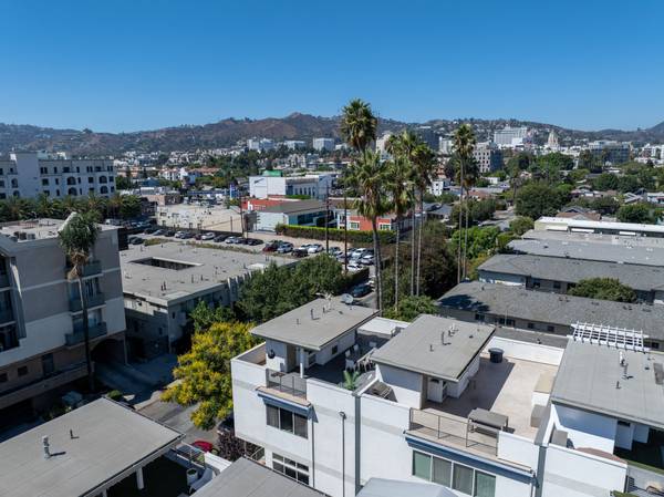 In the heart of Hollywood, just moments from the city's most storied streets, a sleek townhouse in the exclusive Hollywood Colony II community offers a modern take on Los Angeles living. Built in 2014, the residence balances architectural drama with everyday comfort. Inside, airy volumes are defined by 11-foot ceilings and floor-to-ceiling windows that capture the California light. The open kitchen, finished with Caesarstone countertops, custom cabinetry, and stainless steel appliances, is as well suited for intimate meals as it is for lively entertaining. Upstairs, the primary suite serves as a private retreat, complete with a generous walk-in closet and spa-style bath. Additional bedrooms each enjoy their own en-suite bathrooms, creating an ideal layout for guests or family with one bed and full bath downstairs. Atop it all, a private roof deck frames postcard-worthy views of the Hollywood Sign and the city skyline a reminder of the home's place at the center of it all. A direct-access two-car garage, in-unit laundry, and smart-home systems add convenience to the stylish design.Hardwood and tile flooring, central climate control, and energy-efficient features round out a residence that feels both contemporary and timeless.