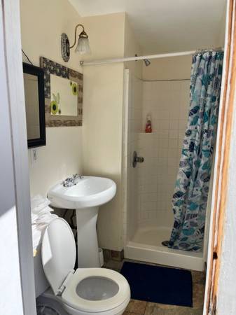 The rent is $1,200 for a couple with a child or $1,000 for a single person. Utilities are included. You will share a bathroom and kitchen, both located outside the room.