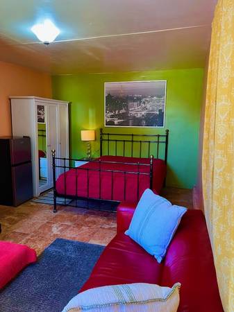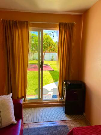 I have a room for rent in a house, located in Burbank on the border of North Hollywood, the room is attached to the house, totally independent, peaceful home environment, spacious yard front and behind the house, the room is furnished with bed, 2 dresser, sofa, TV, small refrigerator, A/C, Wi-Fi, has own bathroom and own entrance.