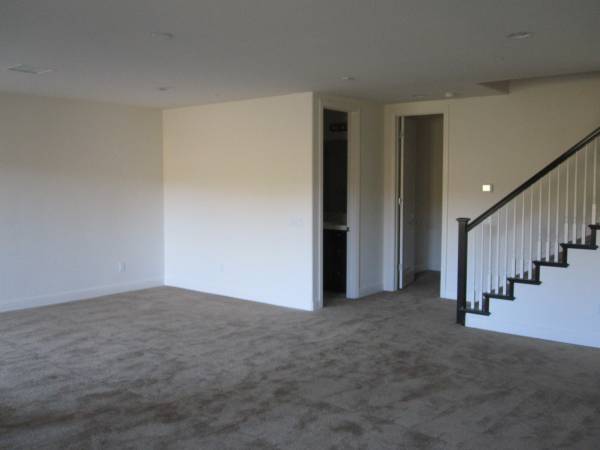 Entire subfloor of three level townhome with private bathroom, plenty of storage space, and private entrance. It has high ceilings, recessed lighting, and a view of the surrounding hill side.