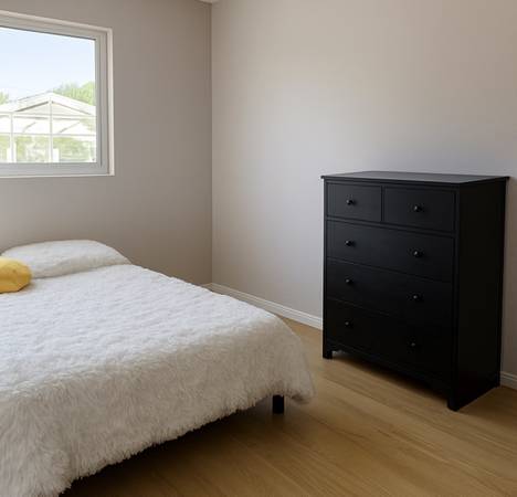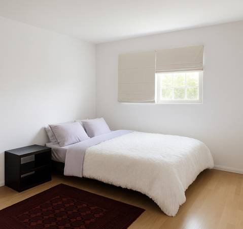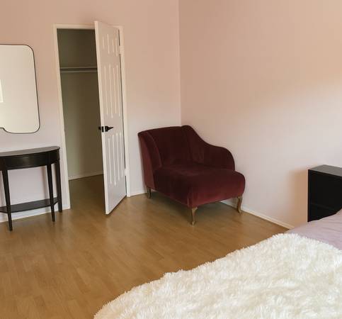 Large size room inside the house with hardwood floors with walk-in closet. There is always street parking in front of the house. It's a very quiet neighborhood with a few cars parked.