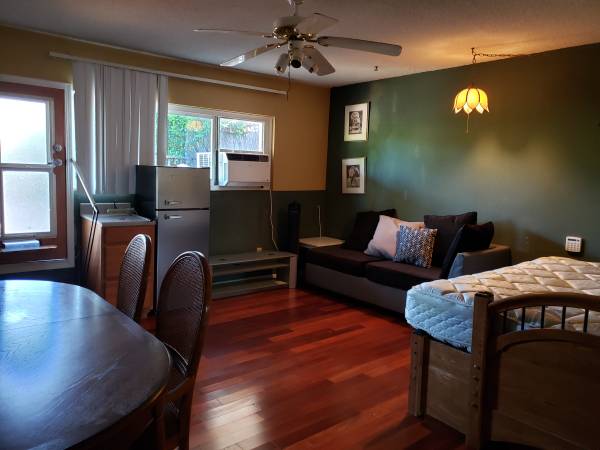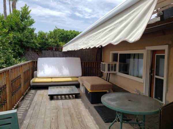 studio-type in the 2nd flr of a 2-storey house at a waliking distance to Ventura Blvd close to restaurants, coffee places, shops, churches etc. Huge balcony where you have a spiral staircase thru the backyard gate accessing up to your own private entrance, furnished (as needed) with addnl computer room space, with utilities & internet $1500. one month deposit, credit score, proof of employment required. street parking with special permit provided. Laundry onsite. single occupancy only. If interested, pls respond with pic.